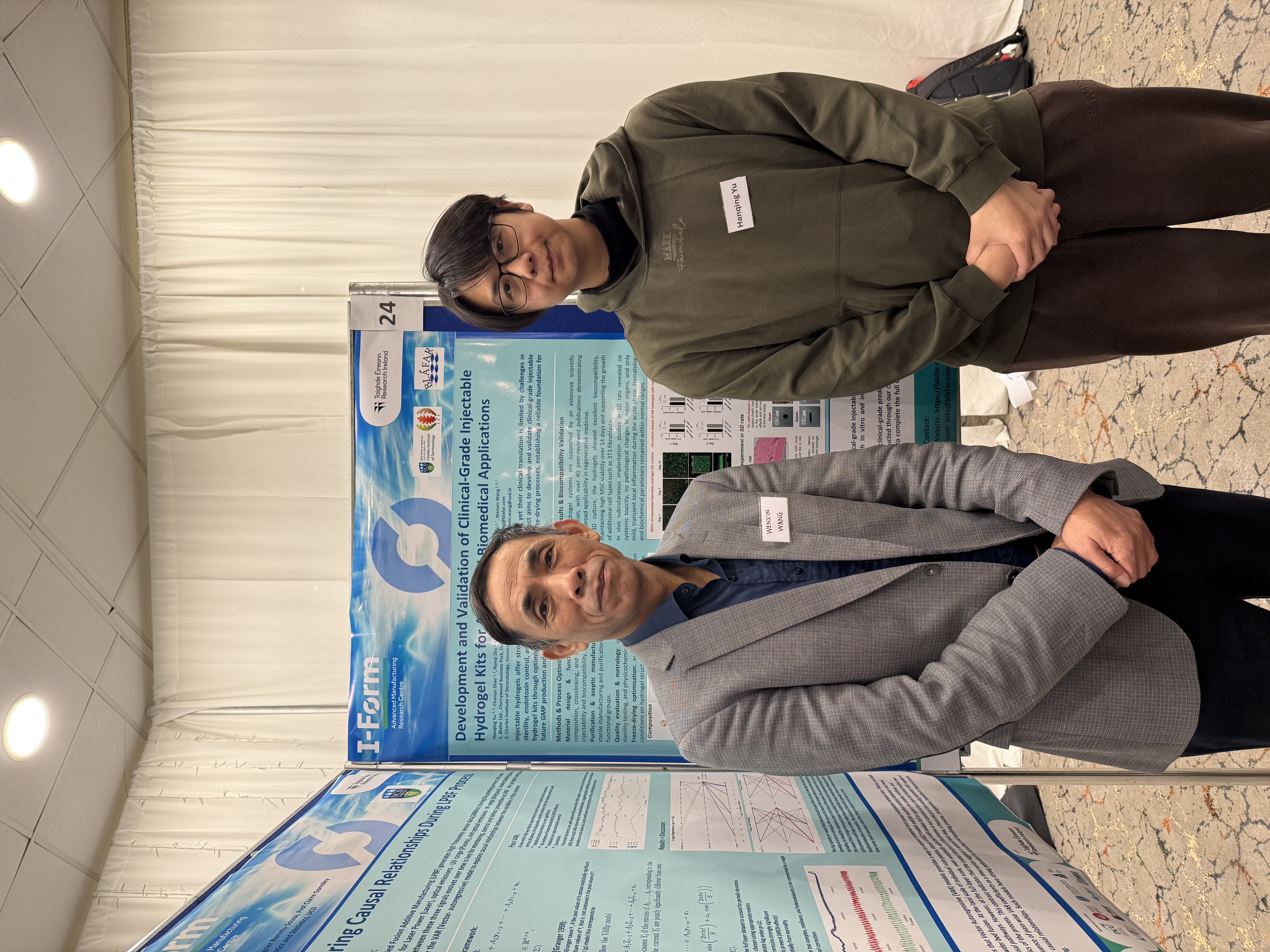 During the event, Liang Yao and Hanqing Yu presented posters highlighting major developments from their ongoing projects. Their posters, entitled “Revolutionizing Viral Vector Production: Biodegradable Hyperbranched Poly(β-amino ester)-Based Transfection Technology Boosts Yields and Efficiency” (Liang Yao) and “Development and Validation of Clinical-Grade Injectable Hydrogel Kits for Advanced Biomedical Applications” (Hanqing Yu), showcased innovative advances in gene delivery technologies and clinical-grade biomaterial development.