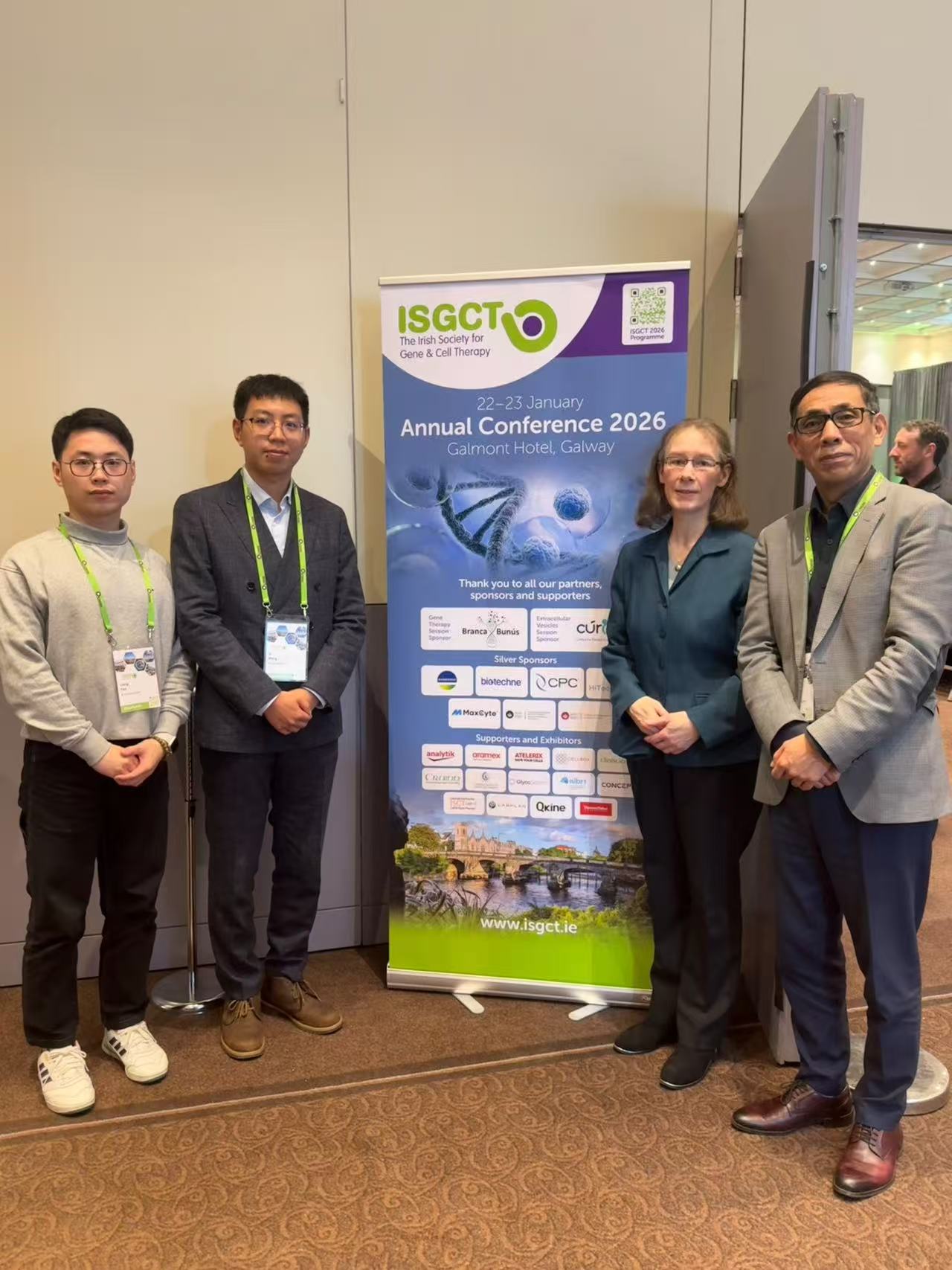 Prof. Wenxin Wang, Dr. Xi Wang, Liang Yao and Ruth Foley recently attended and presented their works at the ISGCT 2026 for a great event in Galway from January 22nd to 23th, 2026. The programme covered an excellent range of topics from basic research to clinical and commercial applications. It was very encouraging to see the strength and depth of work in cell and gene therapy in Galway and across Ireland along with many international contributors. Among the highlights were updates on key milestones with CAR-T therapy approvals at IDIBAPS in Barcelona. We also heard how ocular gene therapy has advanced from crucial basic research in TCD to life-changing treatment for patients.